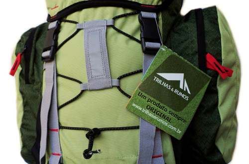 - Duas fitas frontais reguláveis na parte inferior da mochila para prender objetos como isolantes